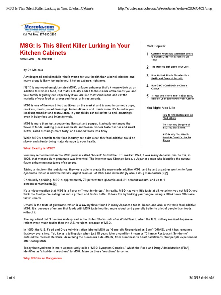 Http Realfarmacy Com Silent Killer Kitchen Cabinet. A widespread and silent killer that's worse for your health than alcohol and nicotine is likely lurking in your kitchen cabinets. MSG: Silent Killer is the reason why your chicken flavor noodles taste more "Chickeny" than real chicken broth, despite the former having just a few shreds of dried chicken.